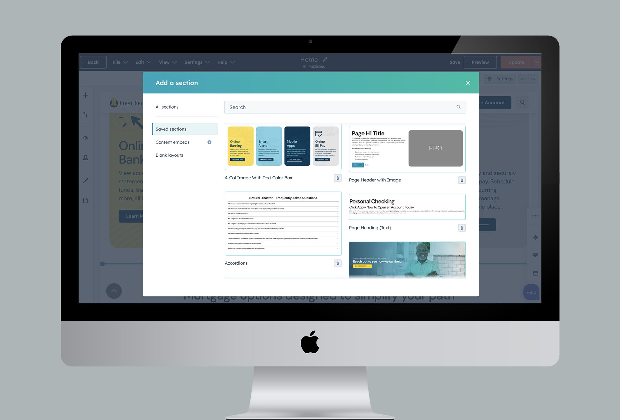 A highlight feature of this website is utilizing HubDB to easily update content for loan officers, locations, fees, rates, and announcements. Custom backend section modules also make creating and editing content a breeze.