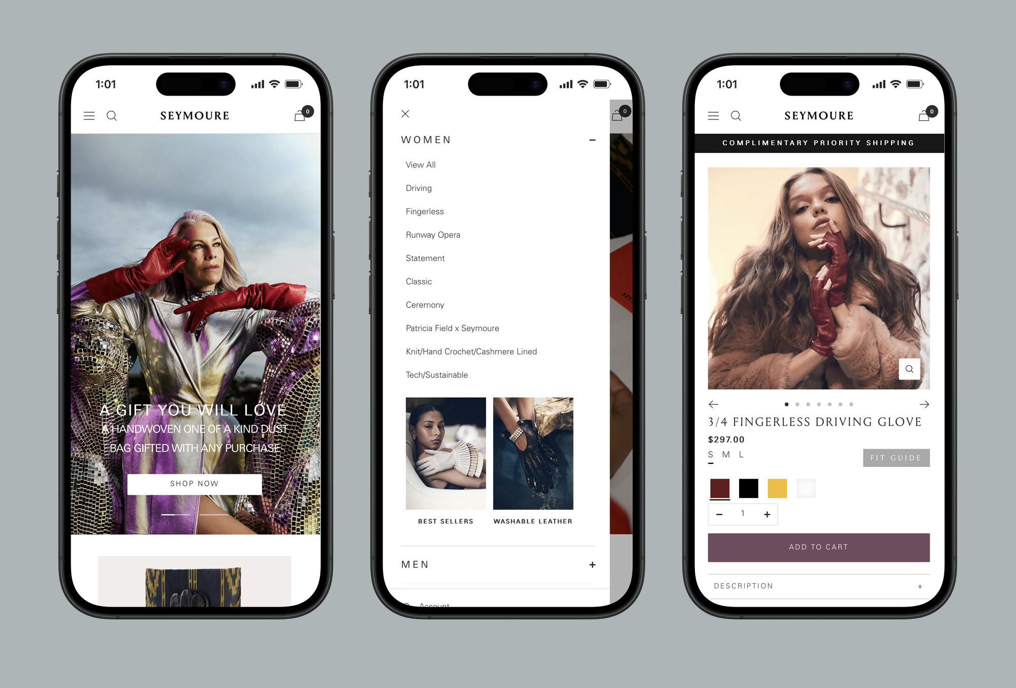 Shopify website design and development for luxury glove designer, Seymoure Luxury Group. The website embodies the innovative vision and conscious spirit of its founder and CEO, Melissa Meister.